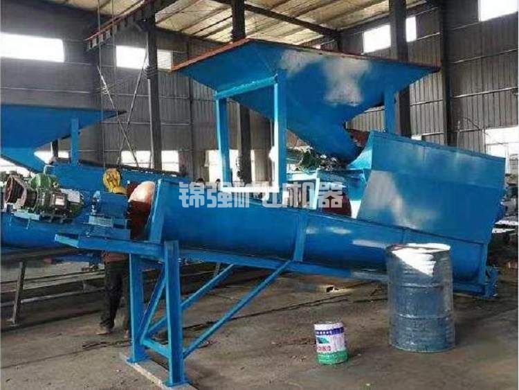 工作流程:人工砂或天然砂由帶式輸送機給料至篩分裝置,篩上的物料作為成品由帶式輸送機輸送至堆場,篩下的物料通過流槽進入沖砂裝置,在沖砂裝置中充分浸泡、攪拌和清洗。清洗后的物料輸送到前端脫水設備進行脫水回收,產(chǎn)生合格的成品砂。